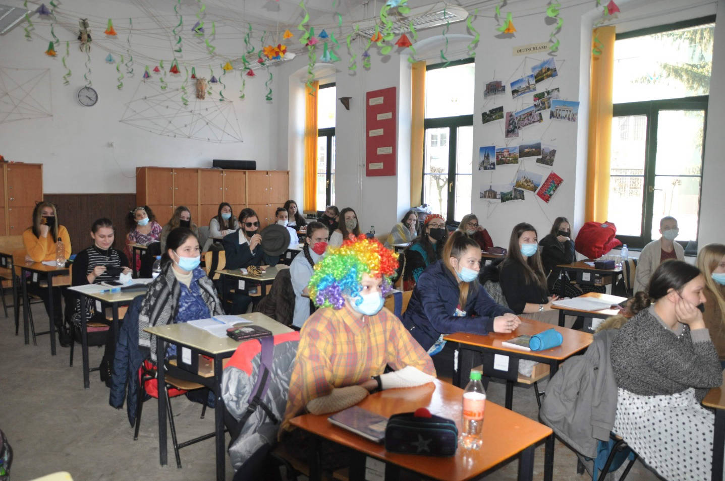 A farsanghét kedden vette kezdetét, beöltözéssel kezdtük a hetet. Minden osztály diákjai teszés szerinti jelmezbe kellett megérkezzenek. A zsűri tagjai a tizenegyedik évfolyamos diáklányok voltak: Cora Szilvia, Lázár Kriszta, Kerekes Betti és Imre Mária Anita. Minden osztály, aszerint, hányan öltöztek be, s milyen jelmezeket készítettek, díjazásban részesült: például volt olyan osztály, aki a leglustább címet nyerte el, de voltak olyanok is, akik elnyerték a legkreatívabb, legszínesebb címet is. Ez mellett pedig minden osztálynak a lelkesedését meghálálva csokoládét is ajándékoztunk számukra. Egyénileg is jutalmaztuk a diákokat, azokat, akik különösen kreatív jelmezt öltöttek magukra.